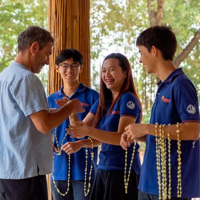 After presenting their offerings, students were given time to speak personally with their teachers. For many, these moments of conversation were just as meaningful as the ceremony itself. Middle School English and Social Studies Teacher Kru Joe reflected on this aspect of the day: